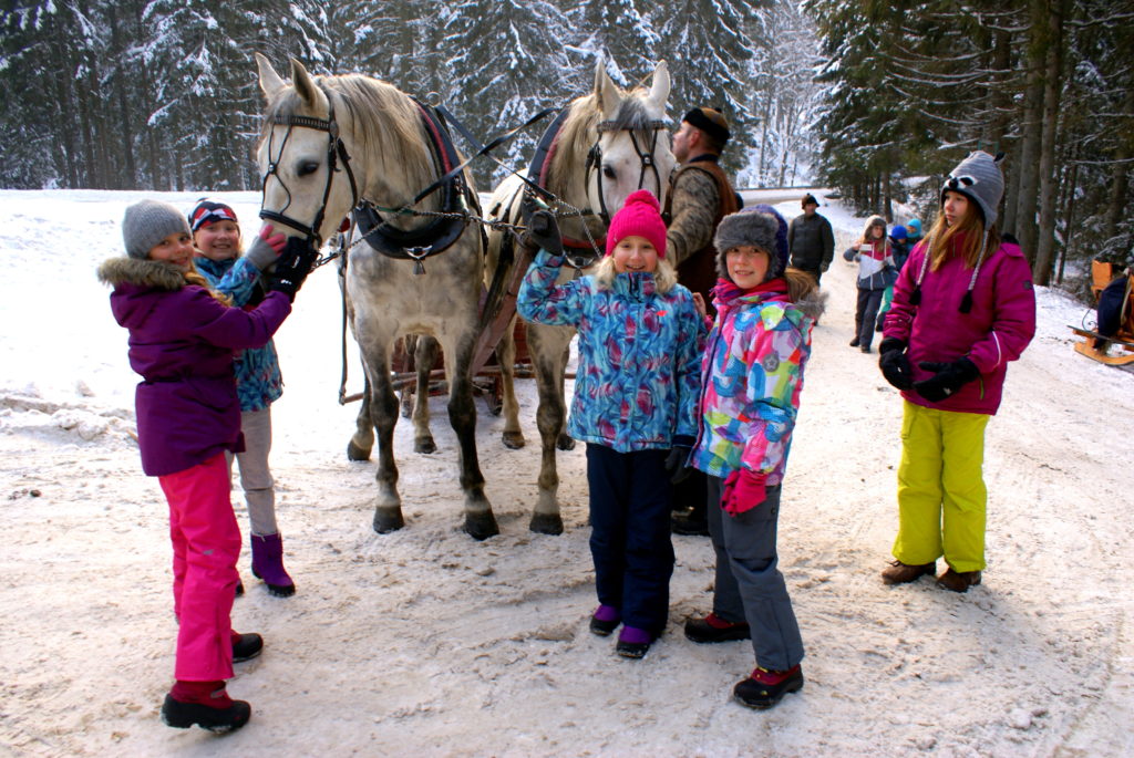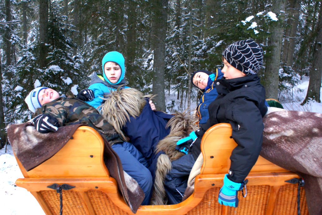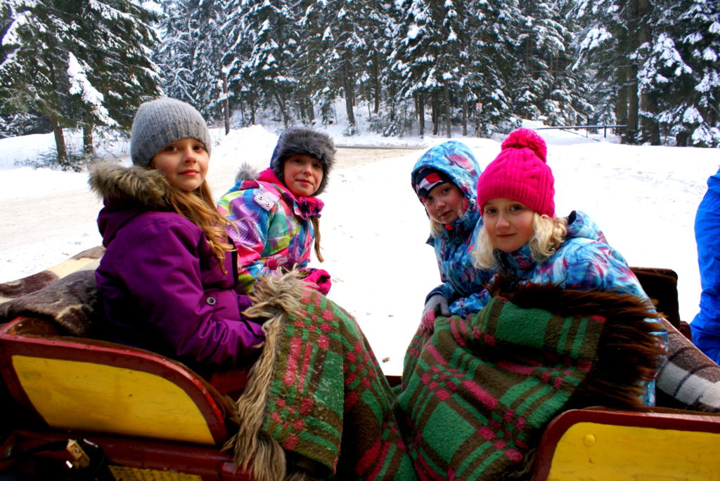 Udamy się na zimową wycieczkę po kaszubskich polach i lasach. Będziemy poruszać się na sankach ciągniętych przez zaprzęg konny! W przypadku braku śniegu – przejazd wozem drabiniastym.